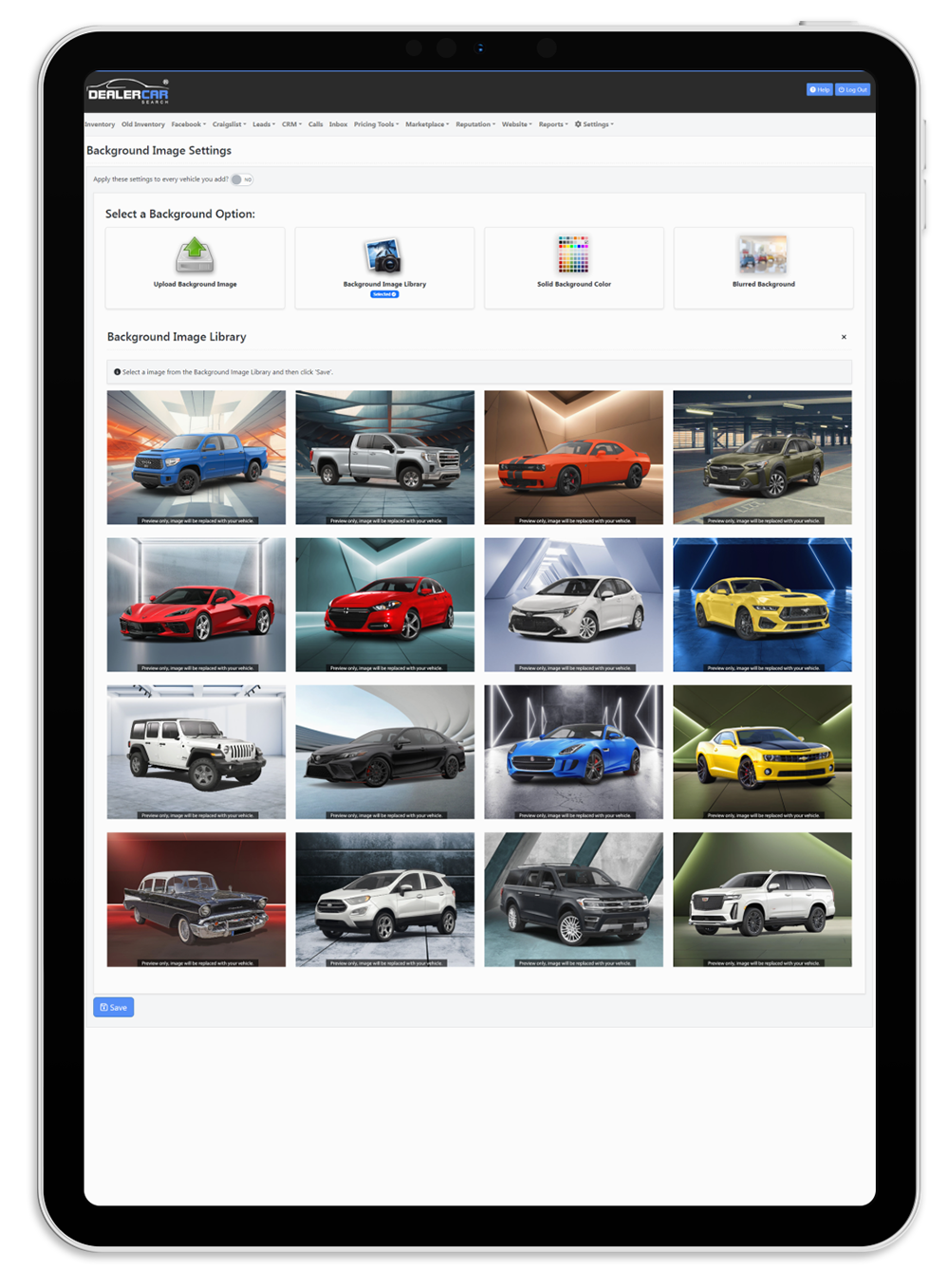 Schedule a DemoIntroducing our revolutionary Background Image Replacement feature – a game-changer for showcasing vehicles on your dealership website like never before. With a range of options at your fingertips, you can effortlessly enhance the visual appeal of your inventory.