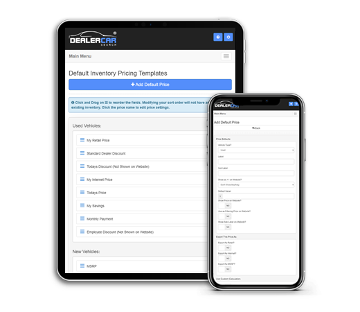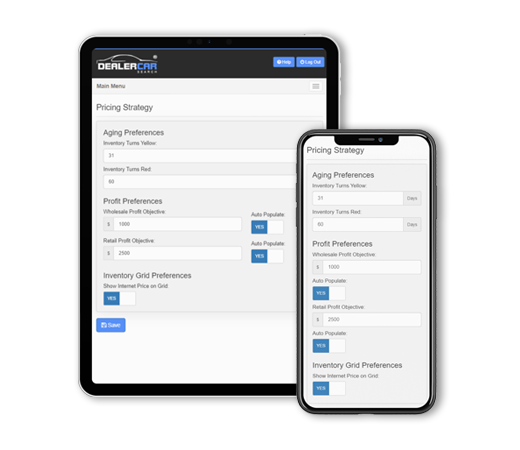 Select the number in days when your inventory turns from Green to Yellow to Red. After entering your vehicle cost into our system, choose whether to show the internet price along with retail price on the inventory grid.